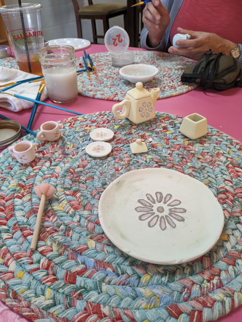 Love is in the air, and these ladies are painting their way into each other's hearts, one pottery piece at a time.